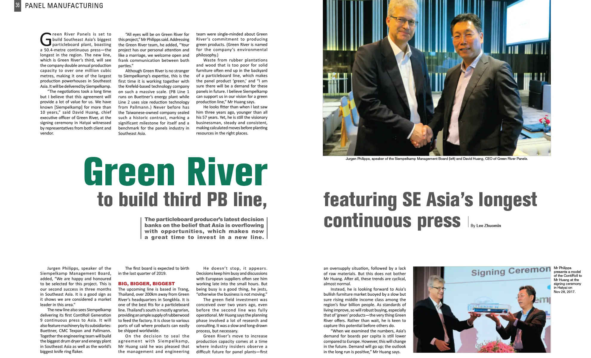 Green River Panels is set to build Southeast Asia’s biggest particleboard plant, boasting a 50.4-metre continuous press the longest in the region.