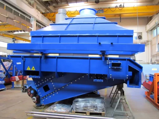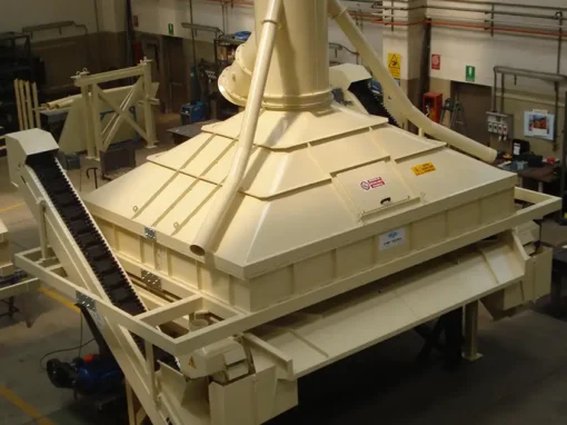 It is aimed at cleaning the material flow feed into the machine by removing any possible contaminants whose density is higher than that of the processed wood chips, e.g. stones, sand, metals, rubber, coarser chips and so on. Dry chip cleaner is especially suitable for PB and MDF chips, as well as for processing recycled wood.